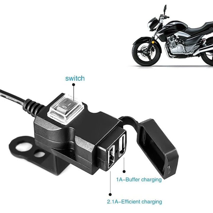 Dual USB Port 12V Waterproof Motorcycle Handlebar Charger 5V 1A / 2.1A Power Adapter Plug for Mobile Phone