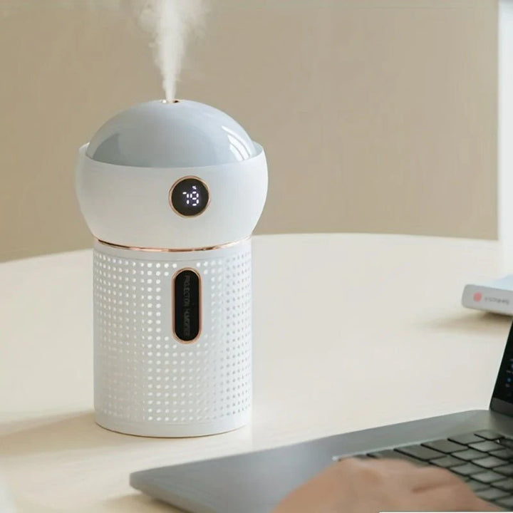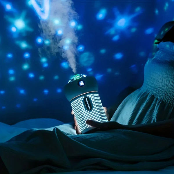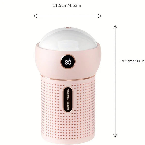 This Projection Humidifier combines large-capacity misting with an atmospheric light feature to enhance your bedroom environment. Designed for aromatherapy use, it helps maintain optimal humidity levels while projecting calming light patterns for a relaxing ambiance. Its efficient spray mechanism ensures even moisture distribution, promoting better air quality and comfort. Ideal for home use, this humidifier supports wellness and restful sleep through controlled humidity and soothing aromatherapy.