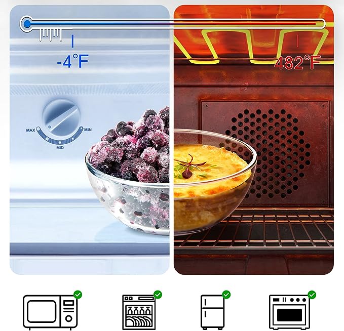 - Glass bowls are Microwave, Oven, Dishwasher and Freezer Safe. The Product Instruction that was provided with says not, it only refers to the plastic lids picture attached.