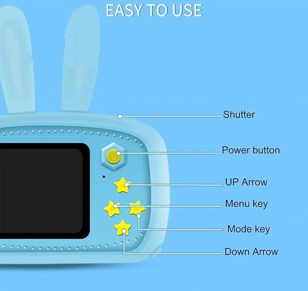 - Cute Cartoon Design: This camera boasts an adorable cartoon character design, instantly captivating children's attention and sparking their imagination. The cute and friendly appearance adds an extra element of fun to their photography adventures.