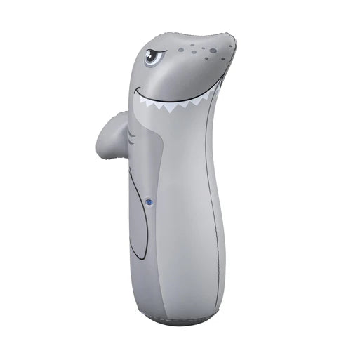 Inflatable shark bop bag that pops back up after every punch or kick.