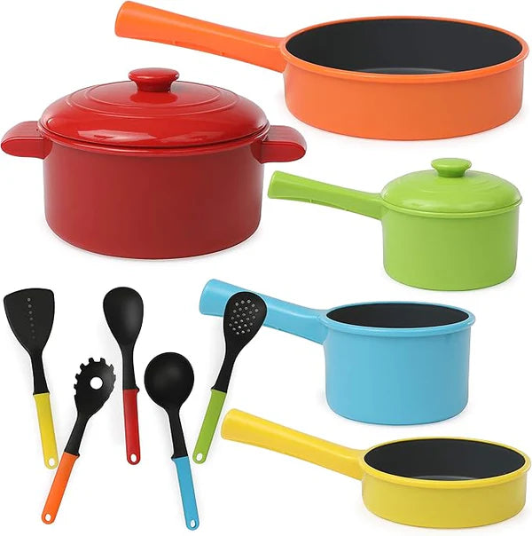 ✅ Includes 10 fun pieces – pots, pans, utensils & more!