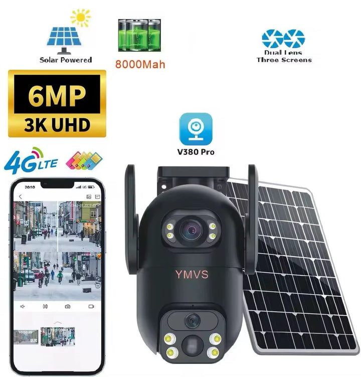 Solar Powered PTZ Security Camera – A high-performance dual-lens surveillance system with 6MP 3K UHD resolution and 8000mAh battery for uninterrupted protection.