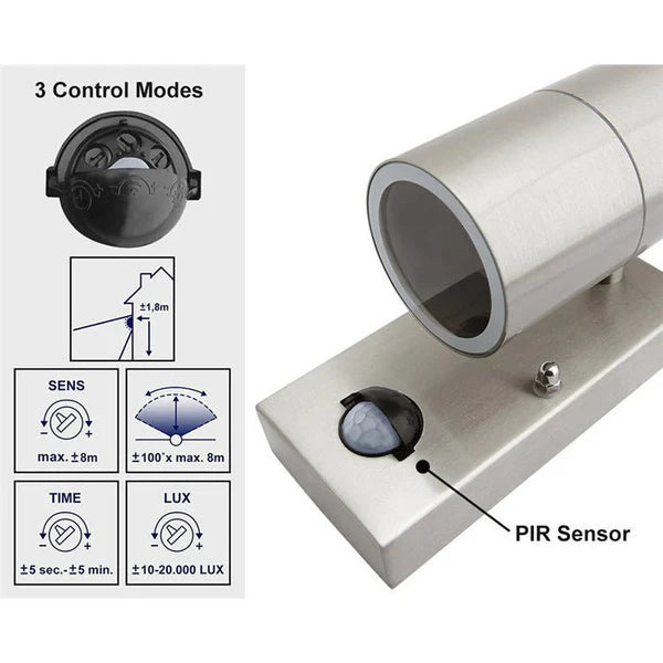 Stainless Steel GU10 Replaceable Bulb Human Body Induction Spotlight PIR Waterproof LED Outdoor Wall Lamp