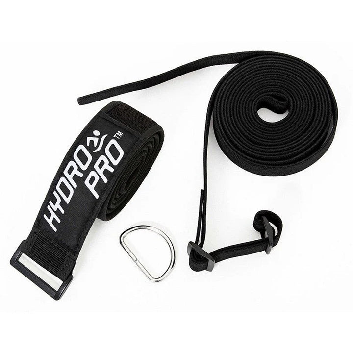 Stationary swim trainer that lets you practice strokes in a small pool by tethering to the wall.