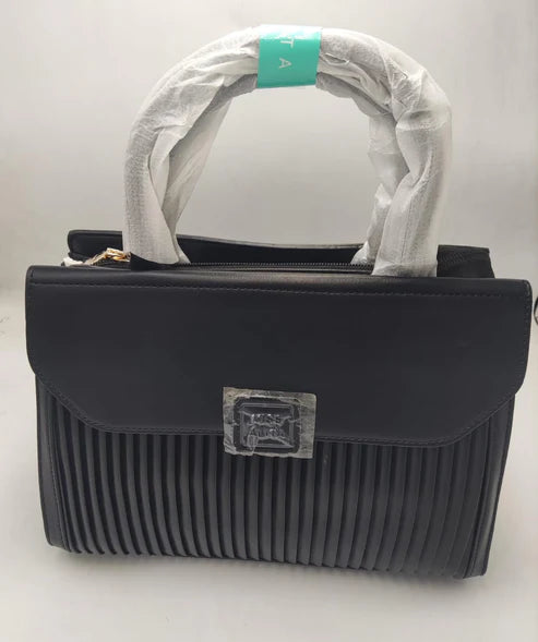 Textured Wave Flap Handbag – A modern structured satchel with elegant wave-texture paneling and a signature gold "AA" clasp for a sophisticated touch.
