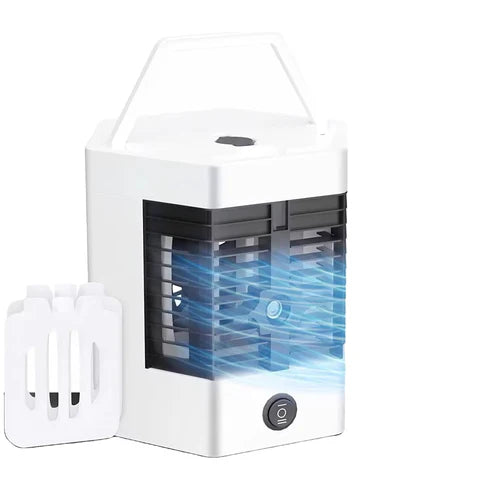 ✔ 2X Cooling Power (label): Designed for enhanced performance compared to earlier models – great for small rooms, desktops, or travel.