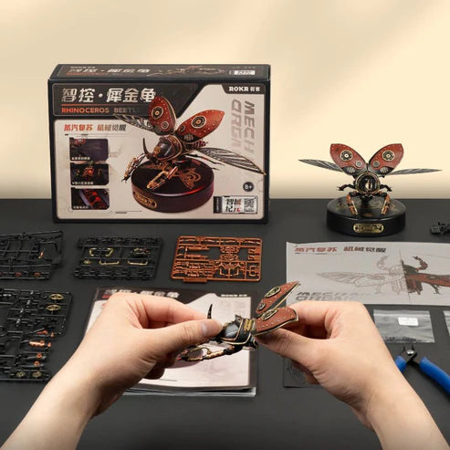 Robotime Rokr Metal 3D Puzzles Games Rhinoceros Beetle Punk Style Gift For Birthday Easy Assembly Mechanical Design Toys - MI01