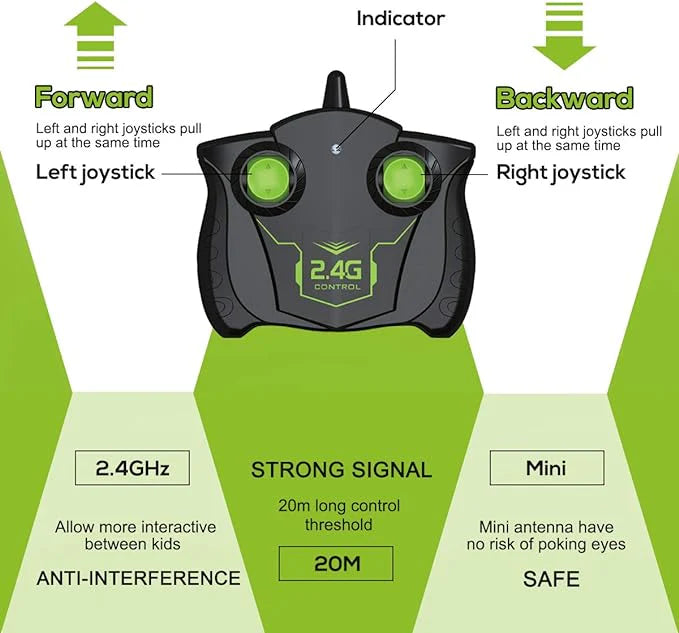 šĀ Amazing Stunt Design:Ā Experience the thrill of incredible stunts with the VAZILLIO stunt car! It can perform forward, backward, left, and right turns, as well as impressive 180 flips and 360 rotations. Pushing the 2 joysticks toward opposite directions results in a fast rotating motion resembling an inverted cone of light. With a maximum speed of 9mph, the excitement never ends.