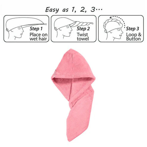 ✔ Ultra-Absorbent Microfiber Fabric (as shown in image) – Gently wicks away moisture from hair faster than regular towels, helping reduce blow-dry time.