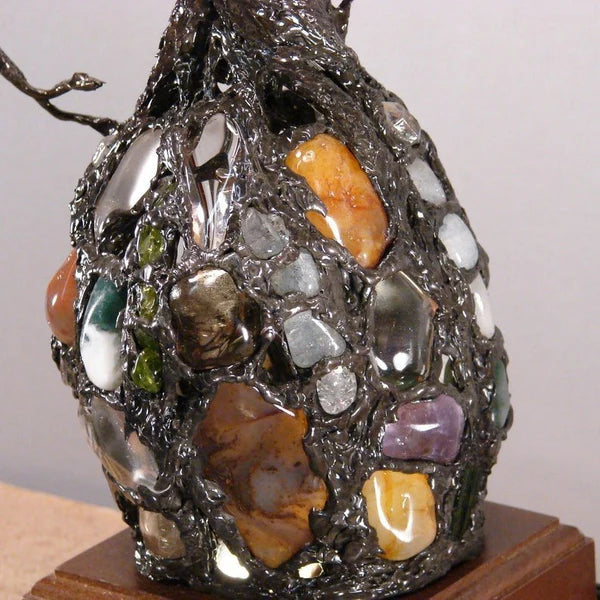 Ancient Tree Metal Sculpture Gem Accent Lamp