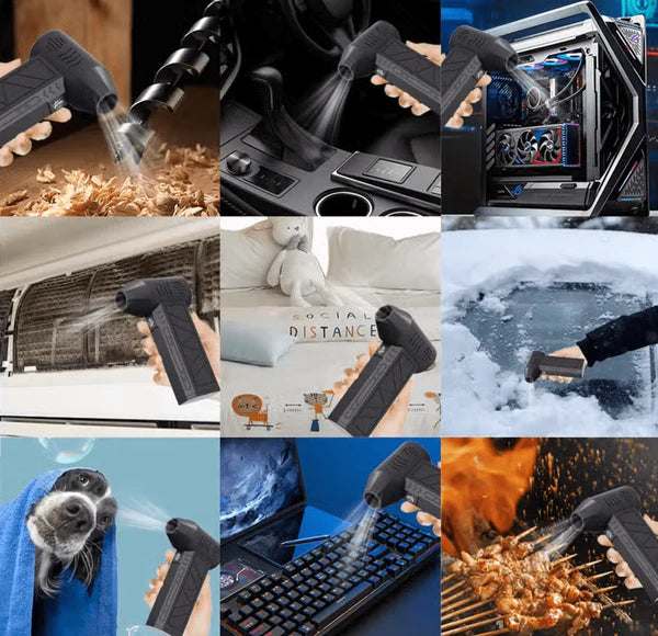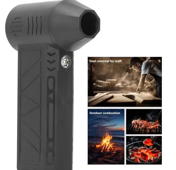 Mini Jet Fan Blower – A compact, handheld electric blower with powerful airflow and a built‑in LED light, ideal for dust removal, BBQ fire starting, and outdoor combustion assistance.Overview