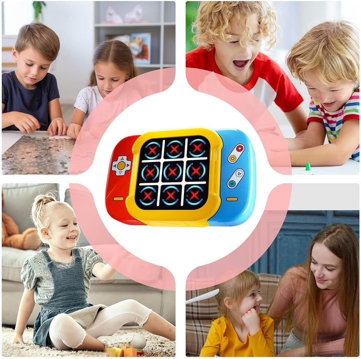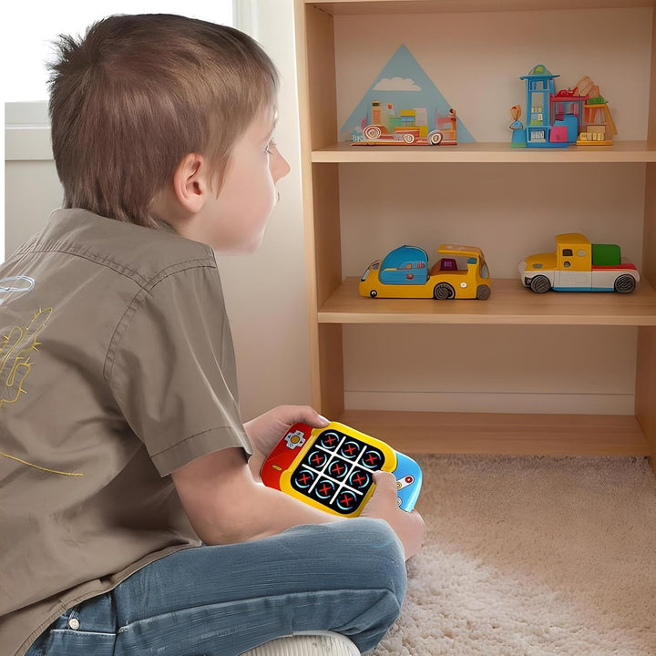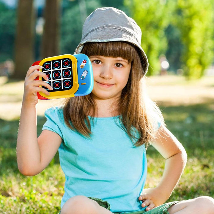 Electronic TicTacToe Game Console – A fun and interactive 3-in-1 handheld game for kids aged 3+ featuring Tic-Tac-Toe, Memory Flash, and Whack-a-Mole modes.