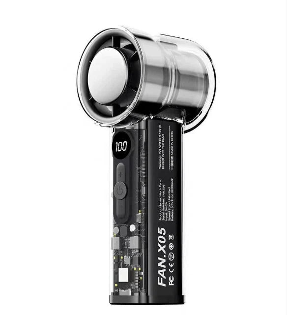 FAN-X05 High Speed Cooling Fan – A sleek, handheld turbo fan delivering powerful airflow in a compact, bladeless design perfect for on-the-go cooling.