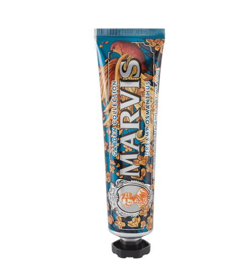 Marvis Dreamy Osmanthus Toothpaste – A premium, limited-edition toothpaste from the Marvis Garden Collection, blending the sweet floral notes of osmanthus with refreshing peppermint and spearmint for a unique and luxurious brushing experience.