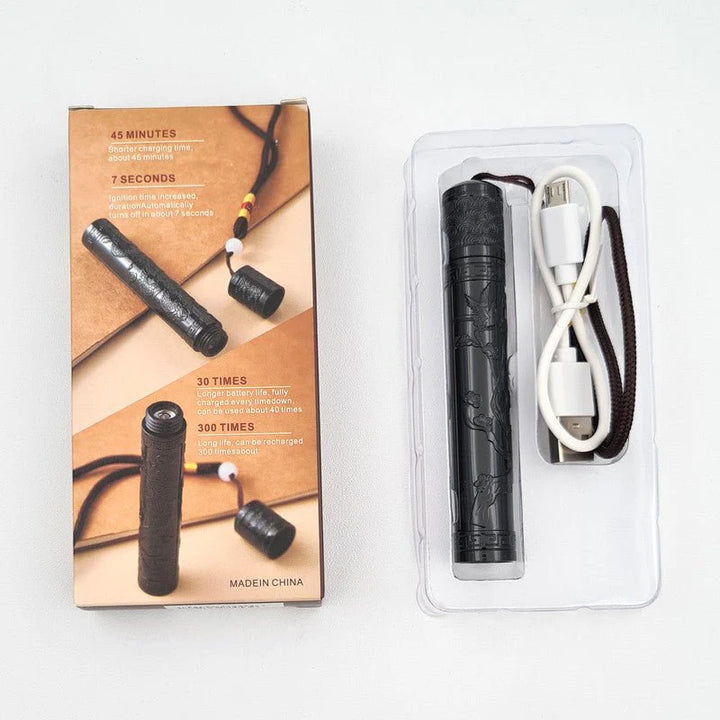 Made from Sandal wood each wooden casing is carefully crafted with beautiful symbolic designs to fully immerse the customer with a feeling of going back to Nature the blowing of the lighter to activate symbolises blowing on wood to start a fire!
