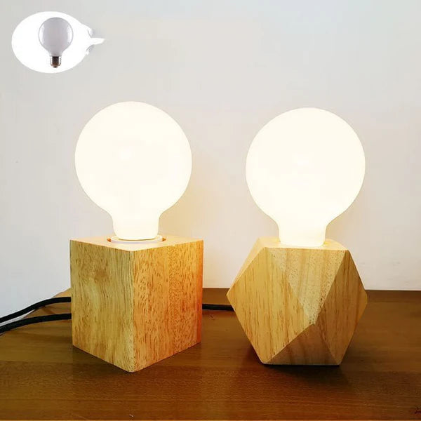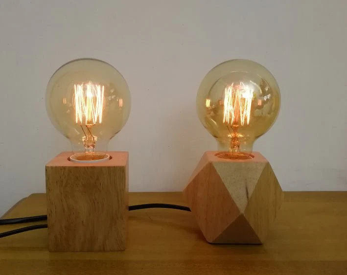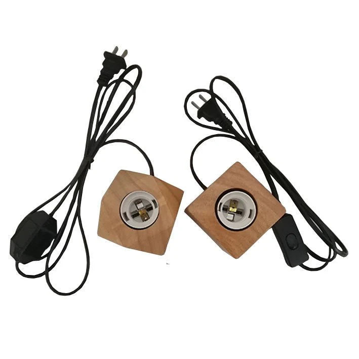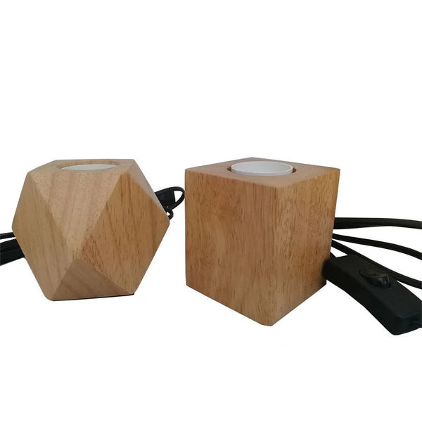 Multilateral Square Rhombus Hemp Wood Color Solid Wood Table Lamp Holder E27 Screw Lamp Head Bedside Bedroom Decoration Accessories