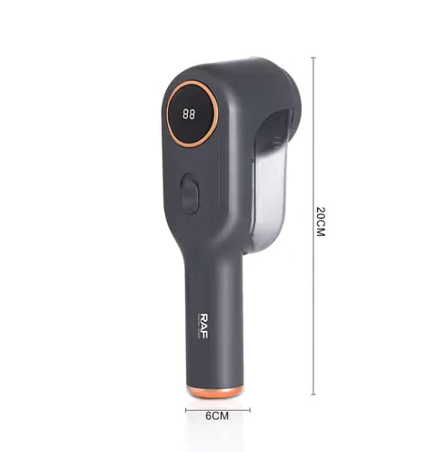 Handheld 3 W lint remover with a digital LED display to keep fabrics looking new.