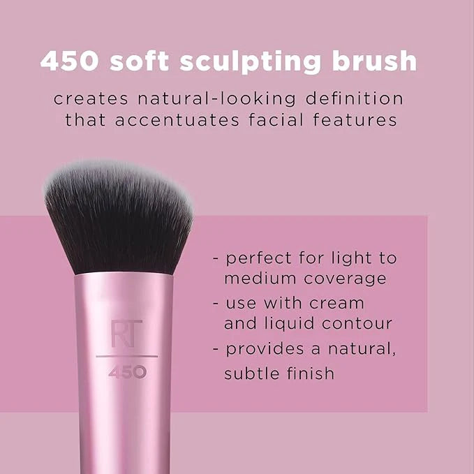 Real Techniques Sculpting Brush (by Sam & Nic) – A professional contour brush with densely packed bristles and an angled shape, perfect for defining and enhancing facial features with cream, liquid, or powder makeup.