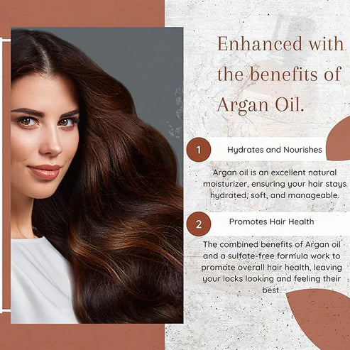 ✔ With Argan Oil (front label) – Known as "liquid gold," argan oil deeply hydrates and strengthens hair.