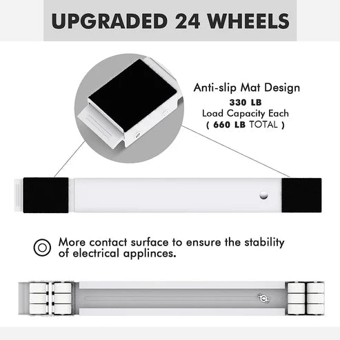 βοΈ Upgraded 24 Wheels πΌ This movable base dolly comes equipped with 24 upgraded small wheels, ensuring smooth and stable movement. Easily maneuver heavy furniture and appliances to clean the bottom, making home cleaning a breeze!