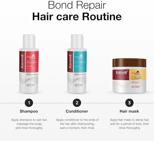 Karseell Maca Power Essence Repair Travel Set – A compact 3-step hair repair system enriched with Maca essence, specially designed for dry and damaged hair. Perfect for travel or trying out the Maca Care System.